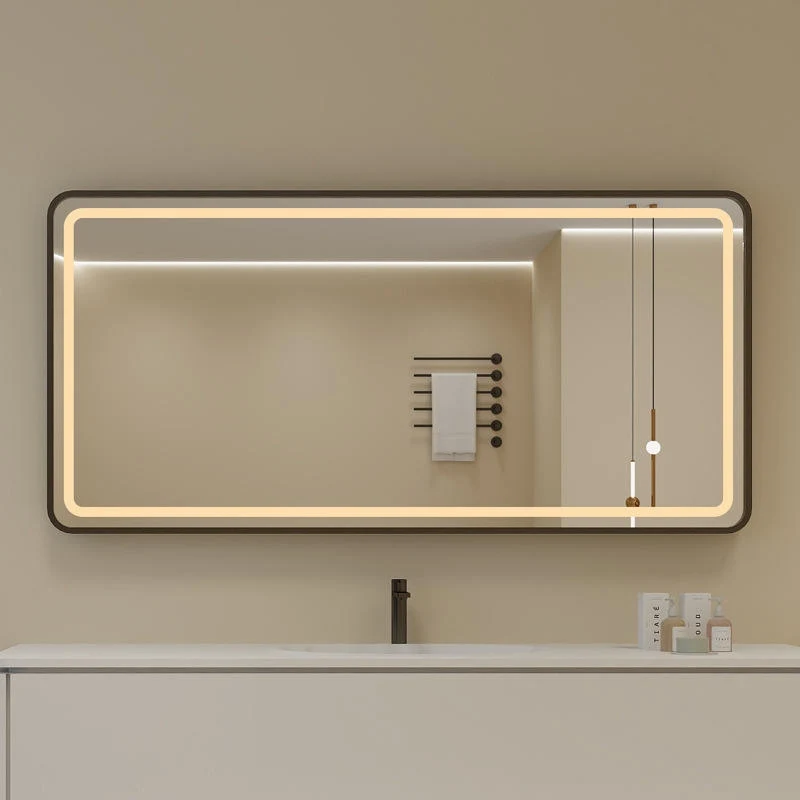 Custom Design Rectangle Stainless Steel Framed Touch Control Screen LED Intelligent Shower Mirror Smart Mirrors for Bathroom