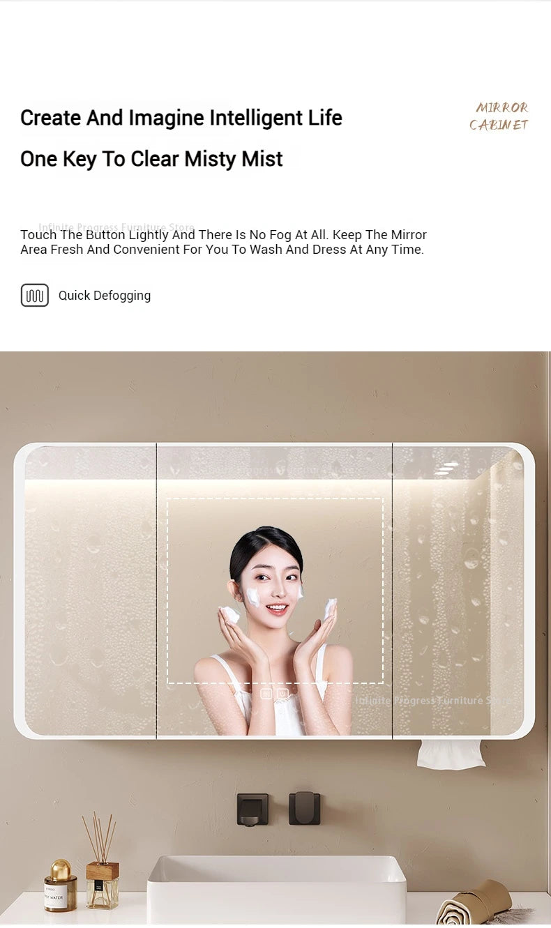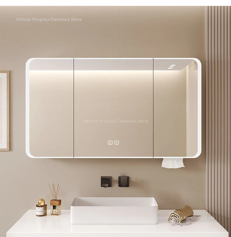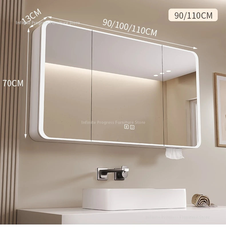 Arc-shaped Smart Bathroom Mirror Cabinet, Wall-mounted Bathroom Mirror Cabinet with Lighting, Smart Bathroom Mirror Cabinet