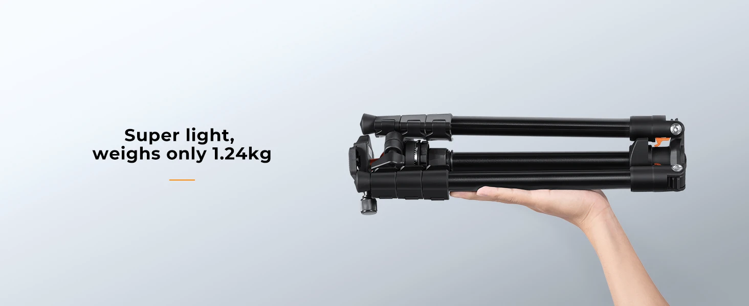 Quality military magnesium-aluminum alloy, corrosion resistance; tripod with ball head weighs only 2.56 lbs/1.24kg, it can be 180°reflexed and folded to 390mm/15.35", easy to put in a backpack or suitcase when travel.