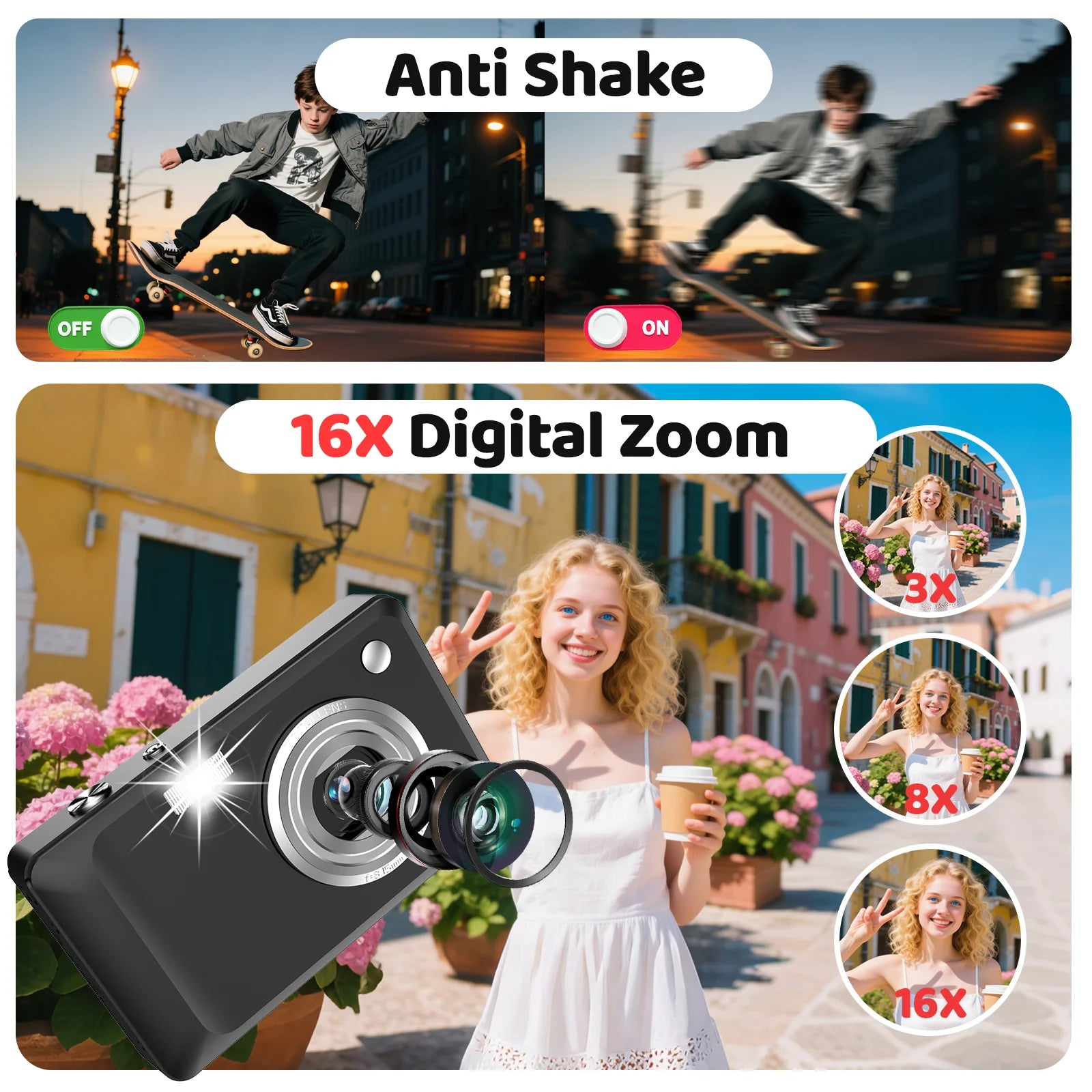 This compact digital camera is designed for teens, students, and photography beginners who want to take high-quality photos and videos without the complexity of a professional camera. With 48MP resolution and FHD 1080P video recording, every shot will be sharp, vibrant, and full of detail.