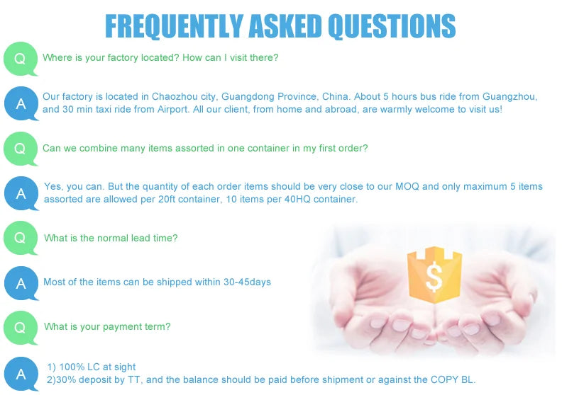 6. Multimode payment:T/T,L/C,Western Union,Cash..