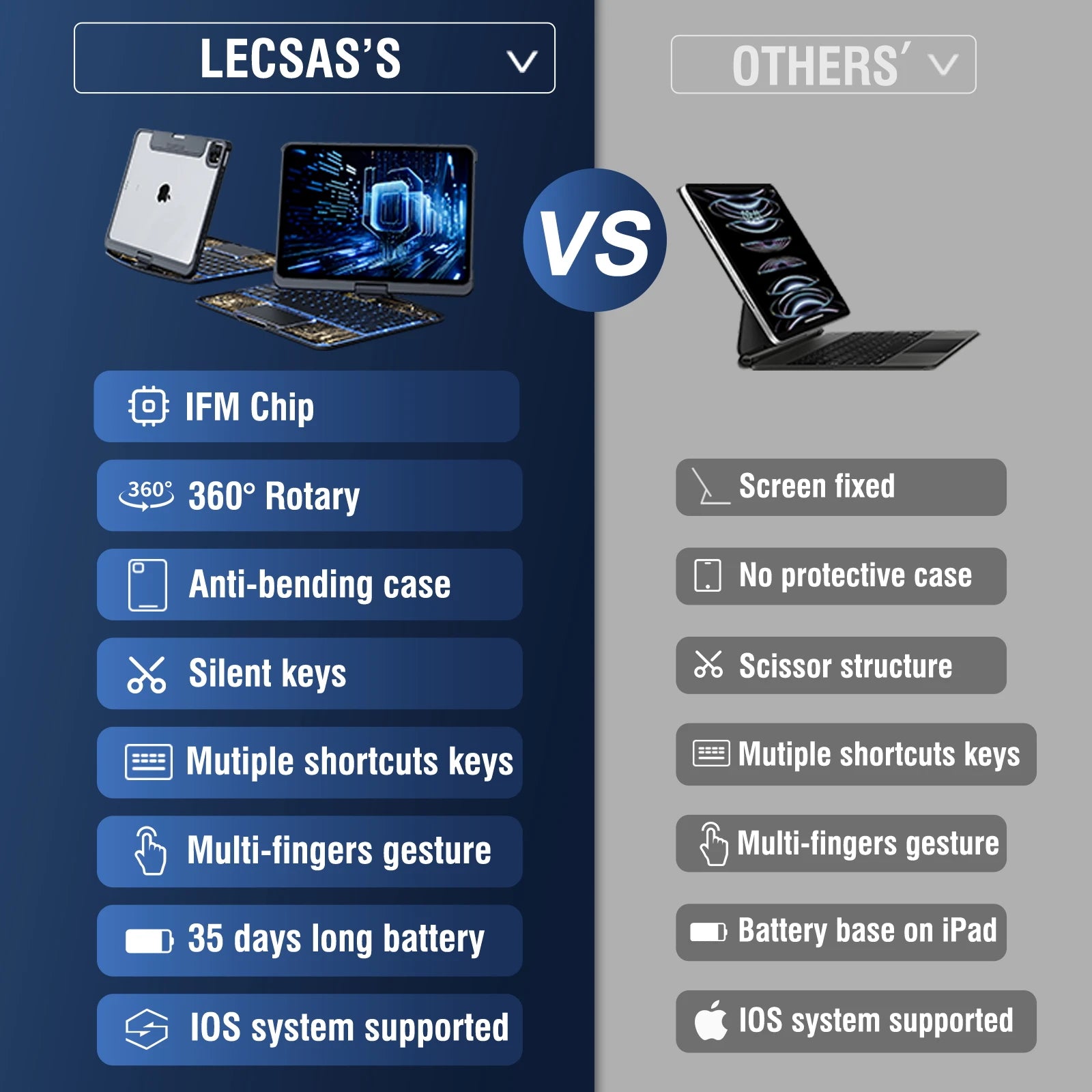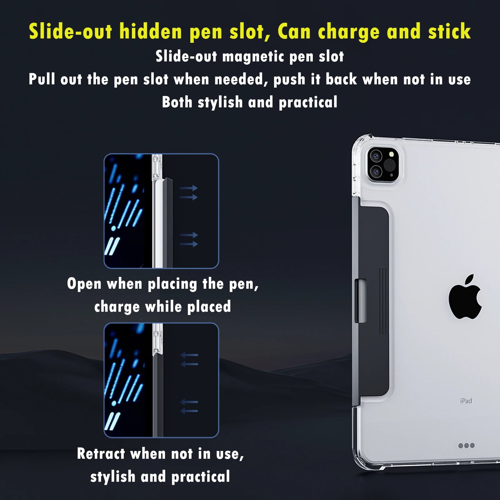 Innovative rotating hinge lets you flip the iPad 360 degrees — switch effortlessly between laptop, stand, or tablet mode for typing, viewing, or sketching.